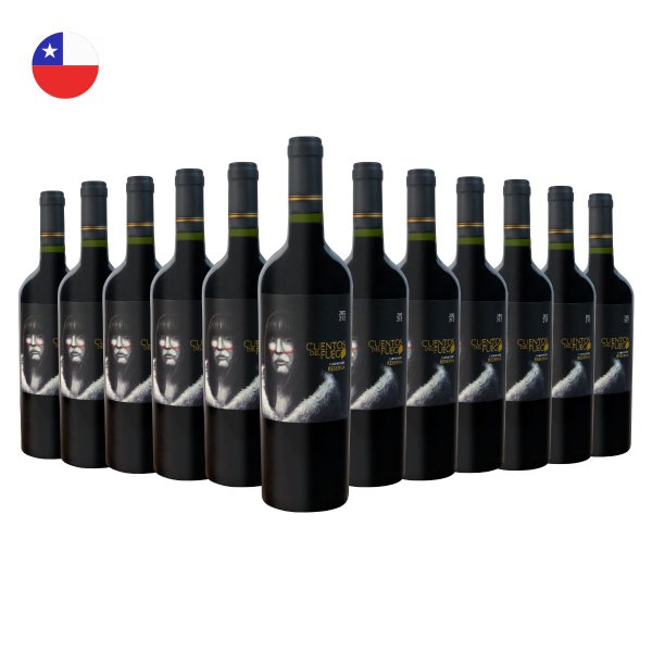 Kit com 12 Vinhos Chilenos Tinto Seco Carmenere Reserva Cuentos del Fuego 750ml