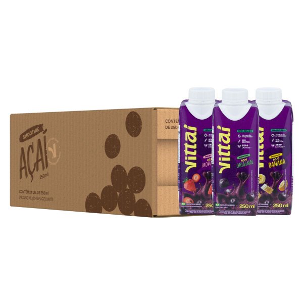 Kit com 24 Smoothies Vittaí Açaí Sabor Original, Morango e Banana 250ml Sem lactose e 0 açúcar