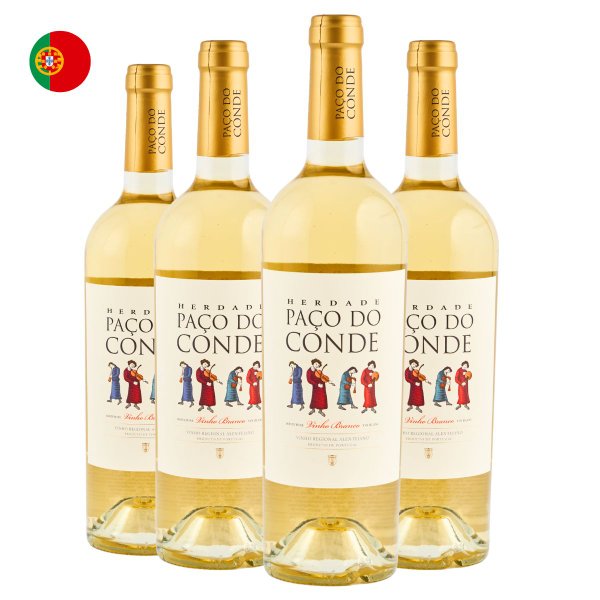 Kit com 4 Vinhos Portugueses Branco Seco Herdade Paço do Conde