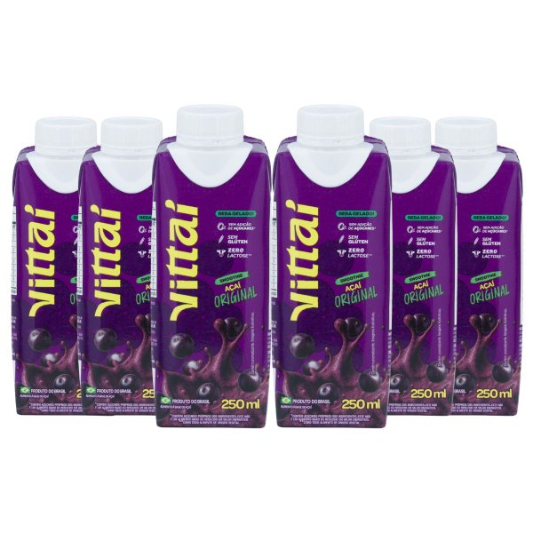 Kit com 6 Smoothies Vittaí Açaí Original 250ml Sem lactose